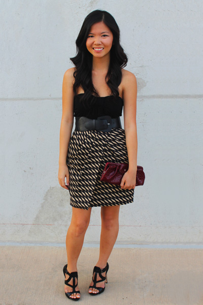 play: f21 top + belt; anthropologie skirt; gifted clutch; l.a.m.b. heels