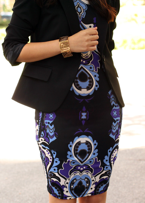 Just a little outfit remix to get the week started. I wore this baroque print dress last month as a skirt, but this time around, I’m letting the whole number shine through. And with NYC’s gorgeous weather in the mid-60s, a black blazer is all I need to top off the look.