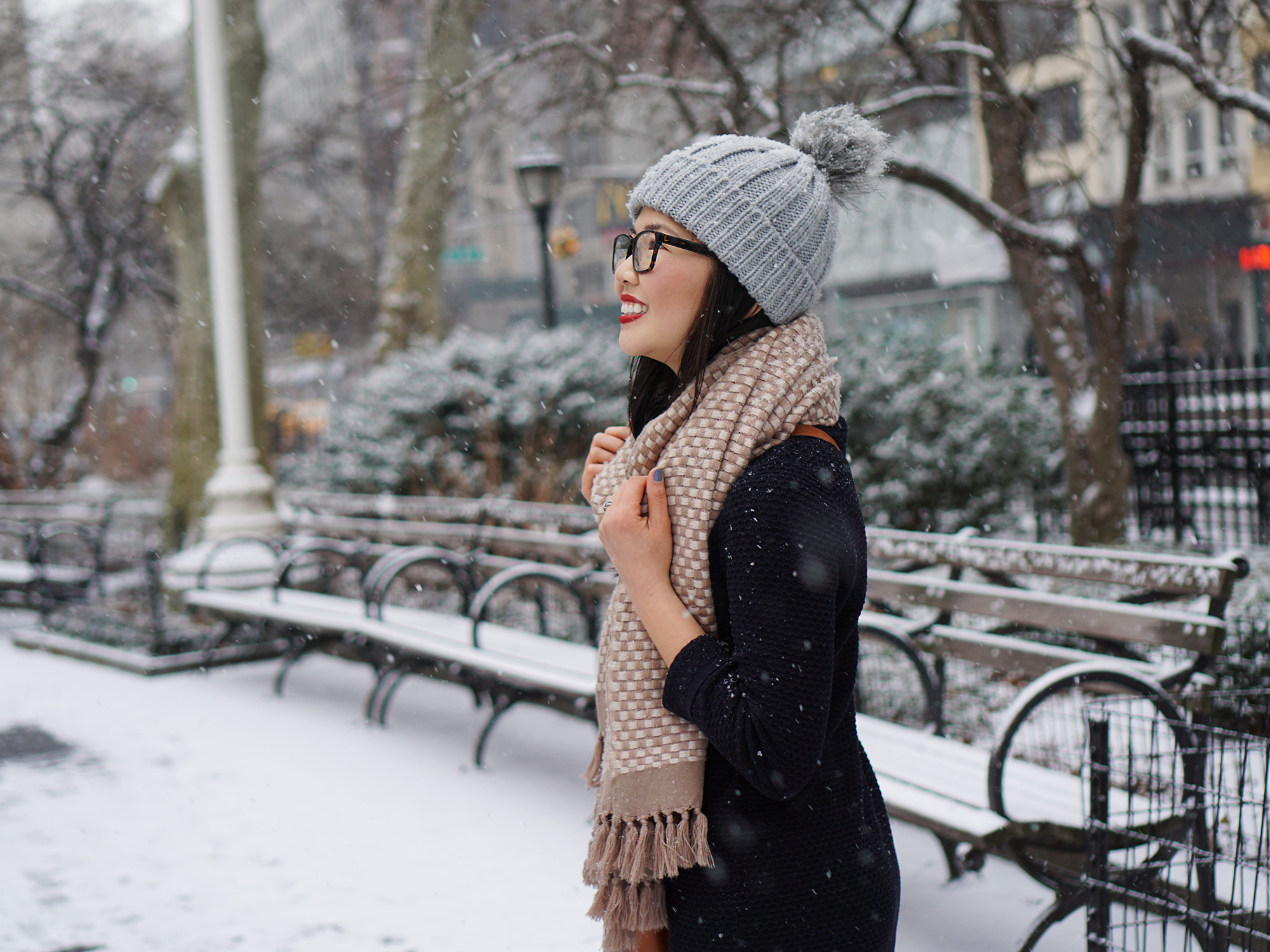 By Monday, I felt like I could parade around the city in a tank top on shorts just because it was 30 degrees warmer than the day before – even with the snow. I opted for a tunic sweater, cozy leggings and my favorite woven scarf instead since I haven’t lost my mind quite yet. But then on Tuesday – I kid you not – it was another 30 degrees warmer than that and I ended up wearing a little mini skirt and rain boots. It’s been a rollercoaster of a winter here in New York and I’m already counting down the days until spring (or at least the until I fly back to San Diego and Phoenix in a few weeks!).