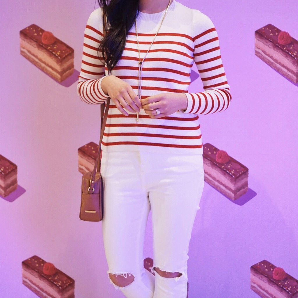 Similar black and white striped sweater / Frame ‘Le Skinny’ satine ripped jeans / GiGi New York ‘Madison’ crossbody bag (c/o) (50% off this week only!) / Halogen basket weave wrap scarf