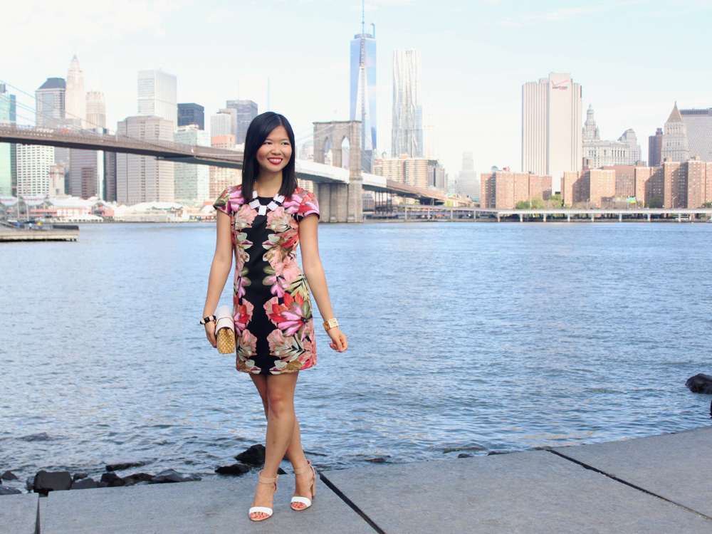 There are a few things in life that will never get old: morning strolls by the water, the view of the Manhattan skyline, and floral print frocks. … Okay, so maybe the first two have a little more longevity, but I love that there’s an infinite amount of ways to wear florals. This is my first foray into mirrored prints and I’m really digging the sleek and modern twist on an otherwise everyday classic. This dress will definitely be in heavy rotation both in and out of the office as we transition from summer to fall.